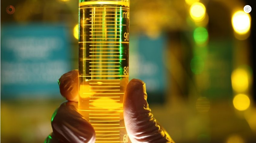 Frasco em laboratório de análise de diesel da Refinaria Landulpho Alves – RLAM